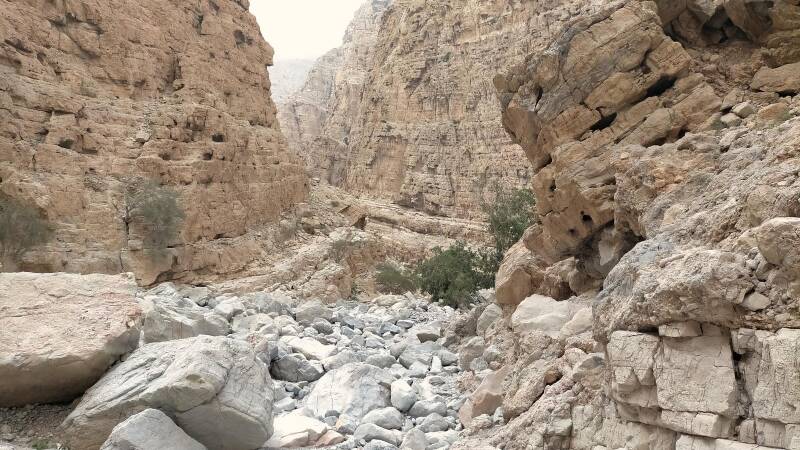 Nach 3 km muss man hinaufsteigen, um das Dorf Al Sanat zu erreichen, aber vorher sind wir noch weiter nach links gegangen, um das Wadi ein wenig mehr zu erkunden.