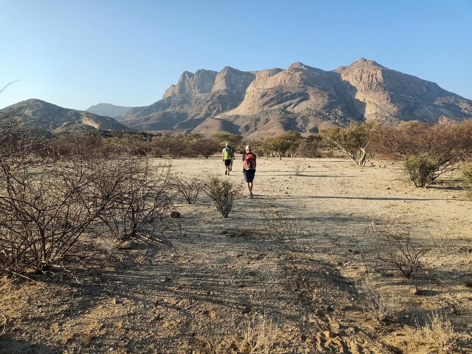 Zwischen dem weitläufigen Khomas Hochland und den markanten Granitkuppeln des Erongo-Gebirges öffnet sich eine der ursprünglichsten Landschaften Namibias. Während das Hochland mit sanft gewellten Plateaus und endlosen Savannen den Übergang zur Wüste markiert, erhebt sich das Erongo wie eine gewaltige, zerbrochene Felsarena aus dem Boden. Beim Trekking trifft man hier auf imposante Felsformationen, stille Pfade durch die Savanne, Spuren aus früheren Zeiten und eine überraschend vielfältige Tierwelt – ein ideales Gebiet für alle, die die raue Schönheit Namibias zu Fuß erleben möchten.