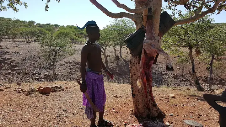 In der Umgebung der Epupa Falls leben seit Generationen Angehörige der Himba, eines halbnomadischen Volkes, das eng mit der Landschaft des Kunene River verbunden ist. Die Nähe zum ganzjährig wasserführenden Fluss bildet die Grundlage für Viehzucht, Alltag und kulturelle Traditionen. Die Siedlungen bestehen aus einfachen Rundhütten aus Holz, Lehm und Dung, die sich harmonisch in die natürliche Umgebung einfügen und die Anpassung an Klima und Ressourcen widerspiegeln.