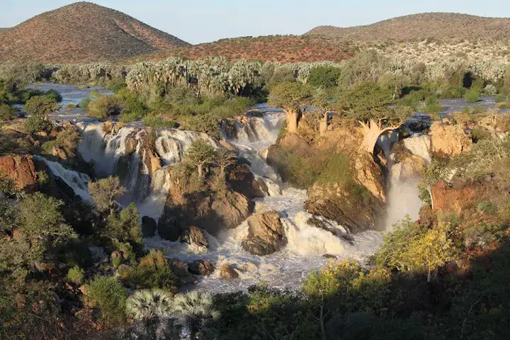 Die Epupa Falls gehören zu den eindrucksvollsten Naturzielen Namibias. Ganz im Norden des Landes, direkt an der Grenze zu Angola, stürzt der Kunene River hier über mehrere Kaskaden in eine enge Schlucht und schafft eine überraschend grüne Oase inmitten der sonst trockenen Umgebung. Ein Ausflug von Windhoek zu den Epupa Falls ist zwar zeitintensiv, belohnt aber mit spektakulären Landschaften, Abgeschiedenheit und vielfältigen Aktivitäten rund um Wasser, Felsen und Flussufer.